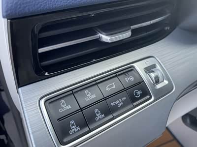 车内有好几处都使用了金属面板,配合皮革的覆盖,搭配起来挺有档次感的。空调出风口的设计也很新颖,勾勒出了更有层次的效果,十分独特。