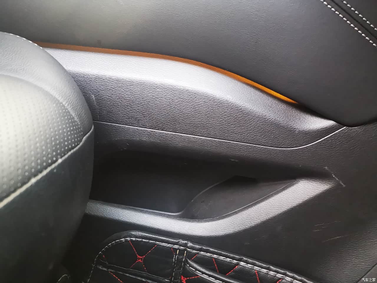 细节做的很到位,这种边边角角的储物空间,很实用,随手的东西都有地方安置,而且还有橘黄色氛围灯,晚上拉开车门的时候,绝对气氛到位,你懂的。