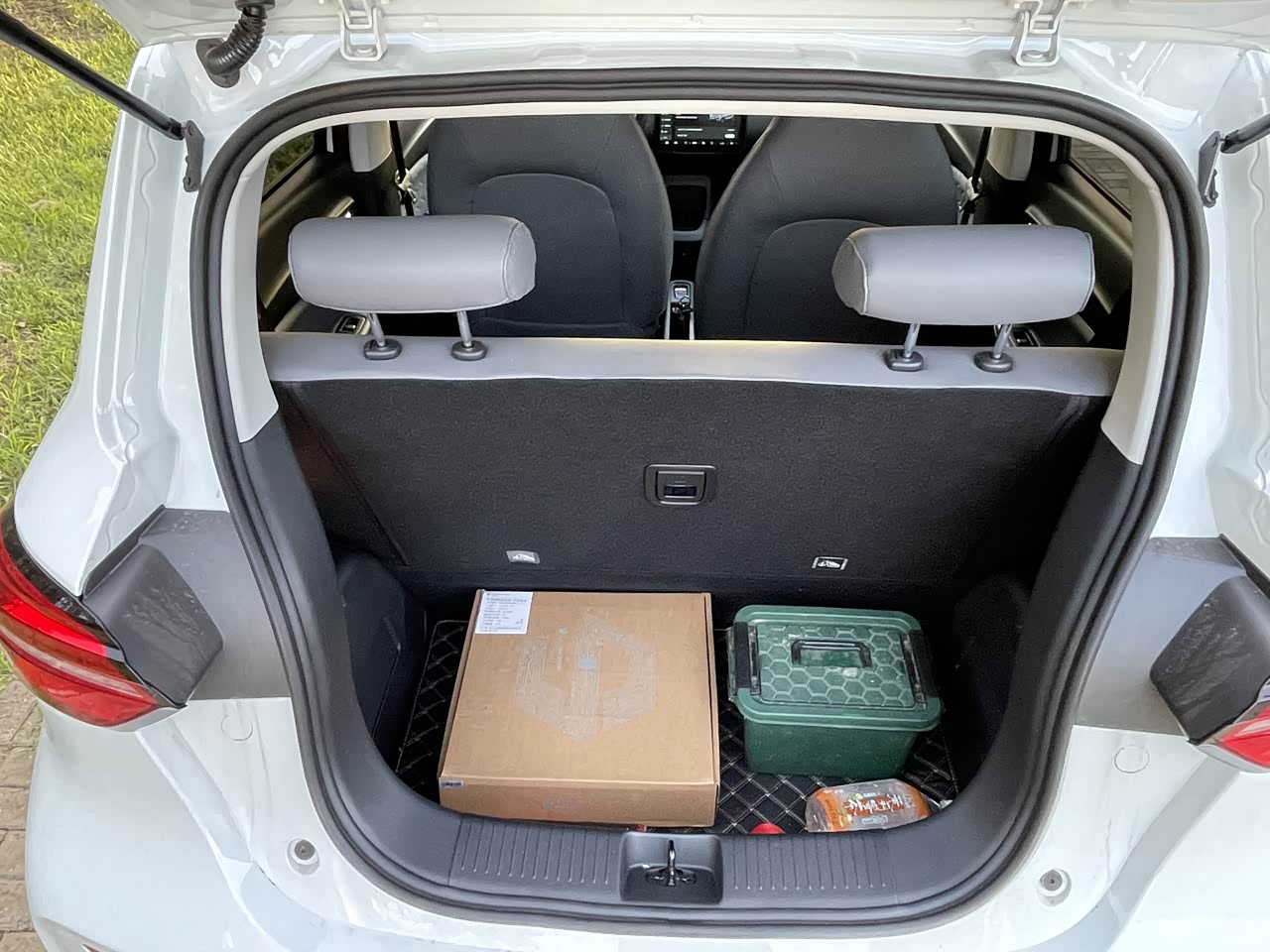 后排乘坐给人很大惊喜,没想到这么小巧的车竟然这么能装,坐在后排,不拥挤,腿部空间很好。
