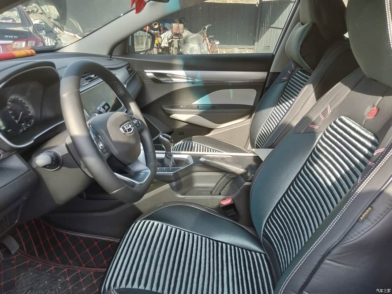 内饰我闻着我们的新车并没有太大的刺鼻味道。这也是吉利汽车主打的健康安全表现。吉利真的是用心在做车!真真实实的良心汽车企业。中控大台,门板,方向盘做工也很细腻。非常能够突然出这款车的品质!前排座椅也是运动座椅,支撑性很好,并且坐着还很舒服。后排也是采用了低地台设计。后排的乘坐人员的舒适感也能很好的保证!