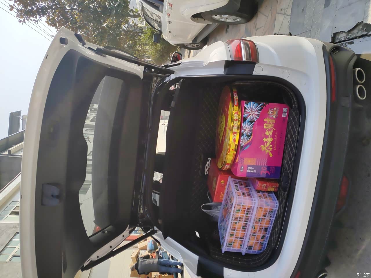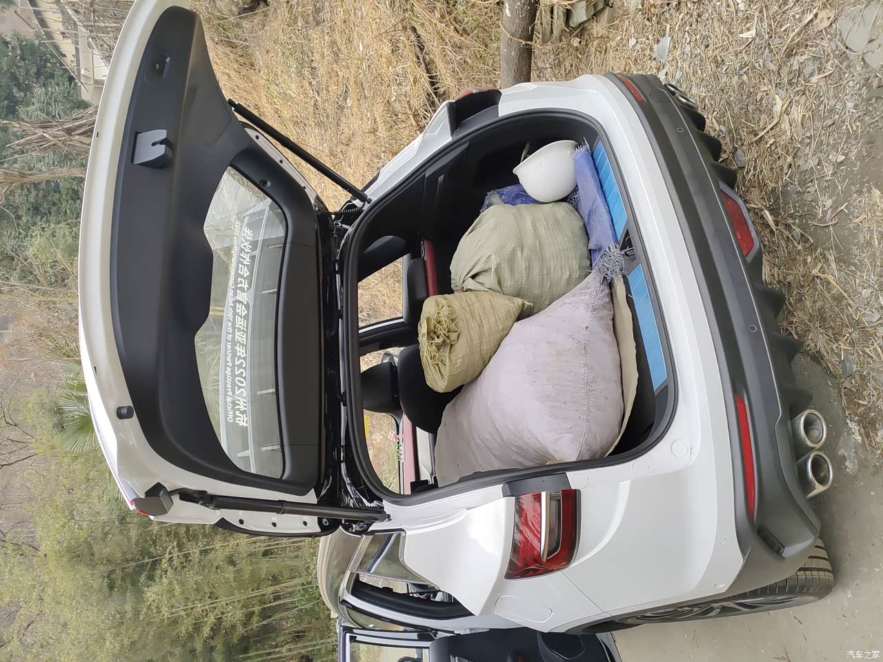 后备箱自然是没有轿车那么深,但纵高可以了,隔板也可以拆卸,后排座椅也可以放倒,放倒后就能拉大件东西了。图2为新车第一天还未挂牌也没有后备箱垫就拉了几大袋子木炭,当时也挺心疼的