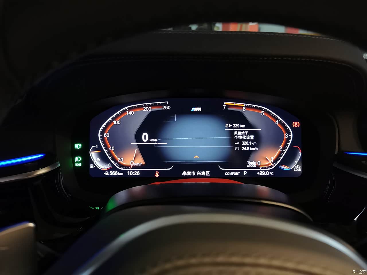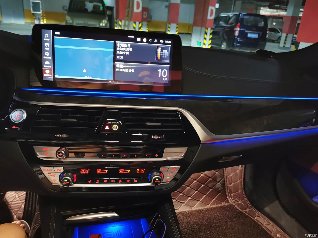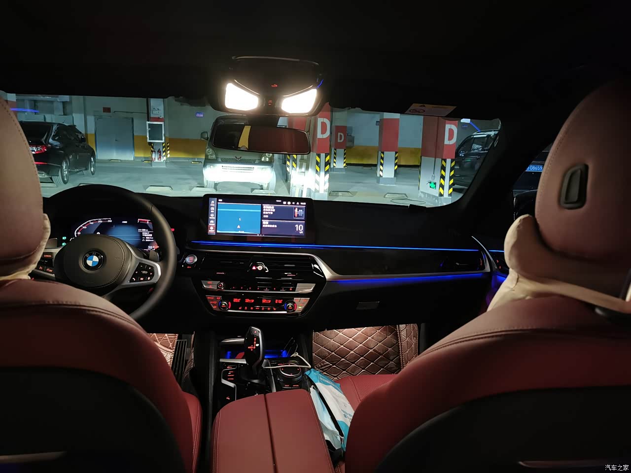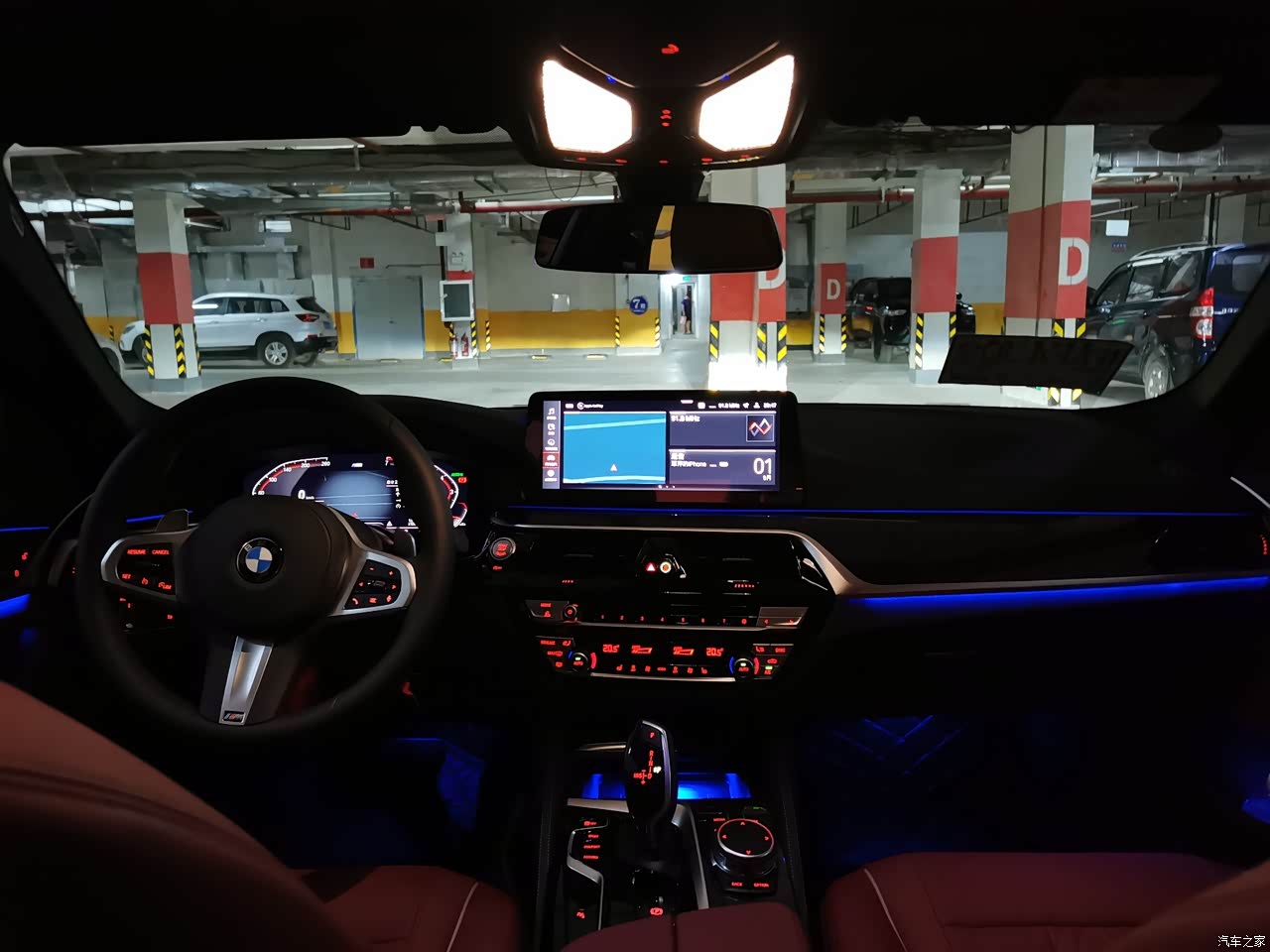 内饰质感很好,经典的宝马内饰。经典大鸡腿,晚上开着氛围灯虽然530领先没有哈曼卡顿但是音质也不错。