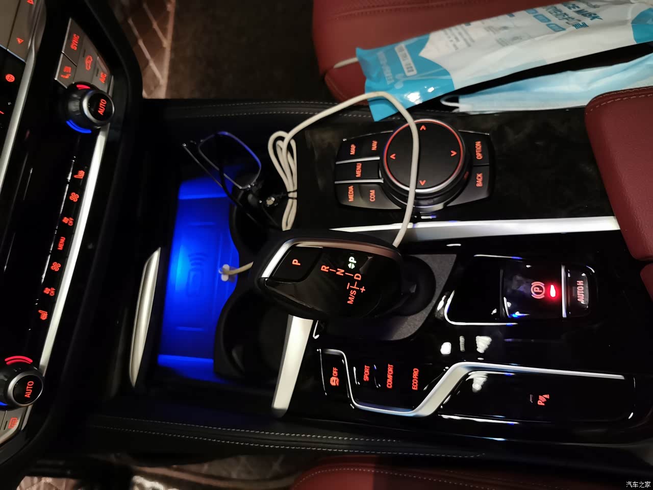 这就需要吐槽了,中控就两个杯架放放大一点的手机都不行,无线充电也是放不进去鸡肋。