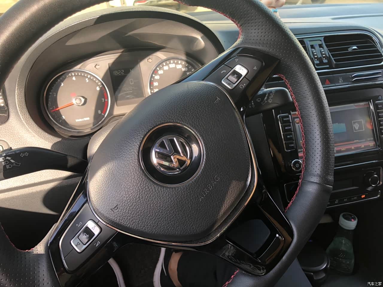 内饰是大众传统风格,设计比较合理,搭配POLO不显老气,新款的方向盘造型增色不少