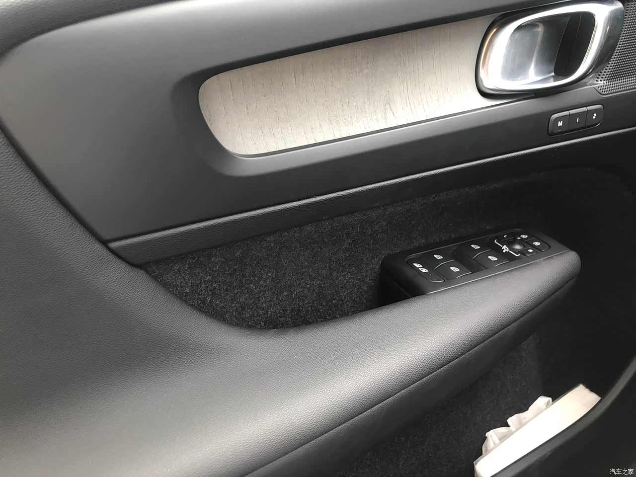 这款车的内饰可以说优点跟缺点都很突出,优点是内饰用料相当环保,新车第一天提回家就闻不到那种新车的异味,连准备好的竹炭包都没派上用场,装配工艺也很严谨,饰板各个连接处都紧密相连,在车高速行驶或颠簸路面行驶时不会产生任何内饰之间摩擦的异响。整体内饰风格设计也跟它的原产地相呼应,把北欧的极简主义做到了彻头彻尾,虽然看起来简单但任何功能都没有缺少而且日常使用起来也比较方便。同时此车槽点也一样明显,内侧门板不是采用皮质包裹而是采用的黑色毛毯包裹,其一是容易脏,易沾灰尘附着,不好打理,其二是看起来档次感较低,完全不像一台二三十万的车上应该有的样子,过段时间考虑去汽配城包一下软皮,也建议各位车友也自己处理一下,确实看起来比较差劲。