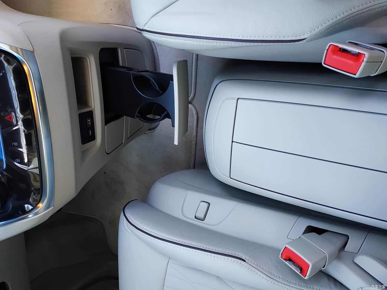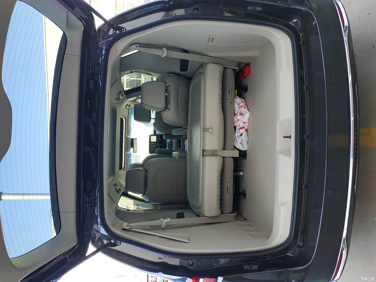 车内空间真是没的说,第二排的两个座椅坐着是做舒服的,两个座椅之间有A4那么宽的过道,侧身就能坐到第三排。在第三排不坐人的情况下第二排座椅放到左右,第二排人员可以很轻松的翘起二郎腿。后备箱的长度不算长,但是高度算是比较高的,放两三个行李箱是没问题的,且第三排座椅支持放到。前排的中央扶手是个超大的储物格,且主副驾驶之间的地板是平坦的,水杯架是向外延伸。