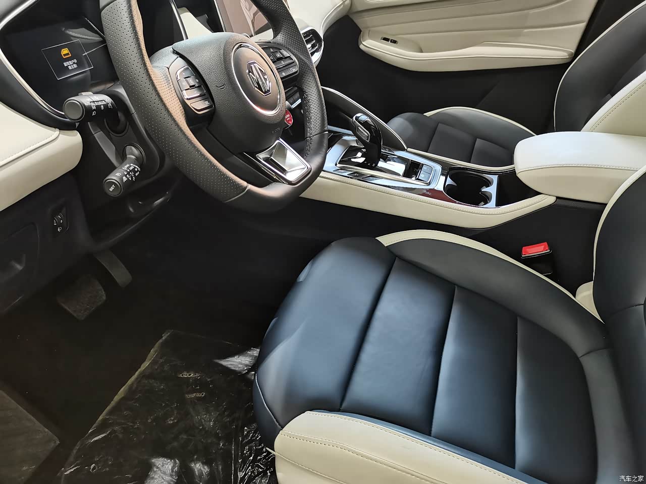 内饰简单大气,是白黑色结合的,视觉感官很舒服,很干净。座椅都是软包的一个材质,给人一种豪华感,就是内饰的细节方面还是有点粗糙。它有一个超大尺寸的全景天窗很赞。