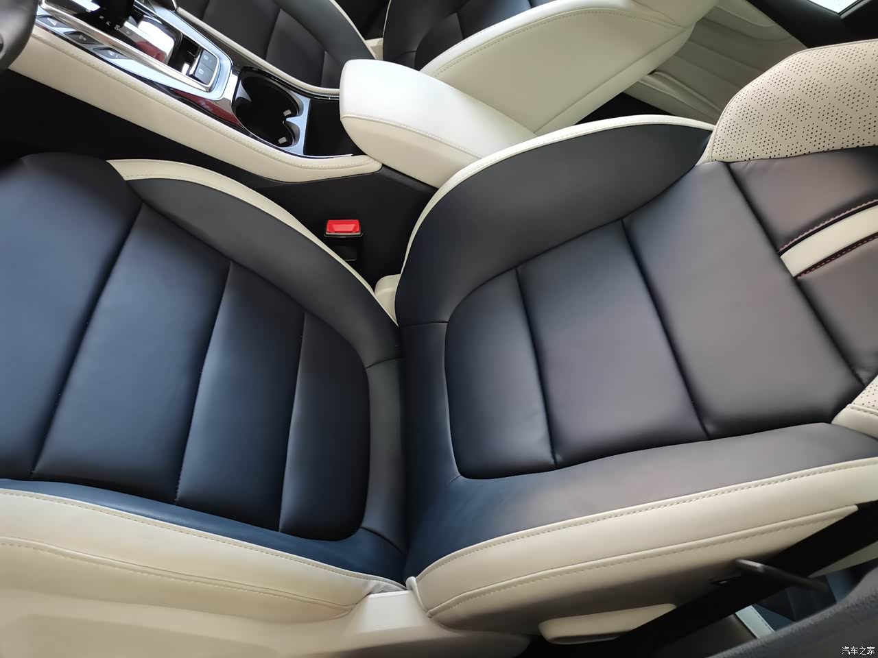 皮质的座椅包裹性很不错,坐在车里还是很舒服的,软软的座椅,座椅也很大,可以电动调节座椅的前后上下靠背。座椅软硬适中这样出去玩儿开长途也不会觉得累。真皮的方向盘手感非常好。就是隔音不是特别的满意,在车内还是听得到噪音,但这一点点的小毛病也不影响我对它的喜欢。空调非常的给力,坐进车里一会儿会儿就很凉快。后排的空调出风口处还有USB的充电接口,这样坐在后面也可以手机充电了。