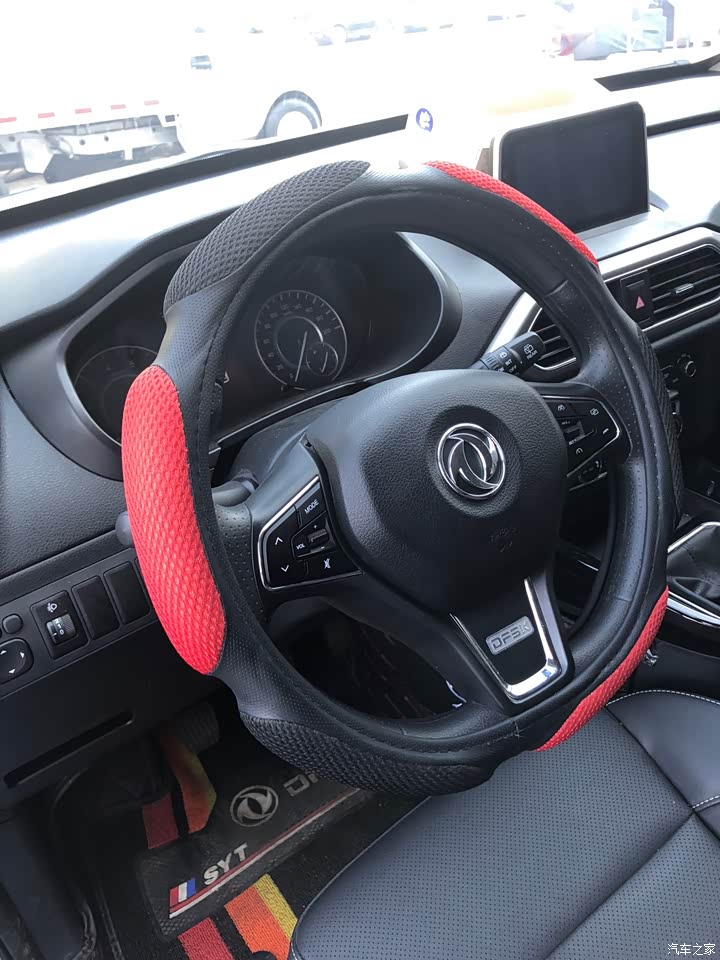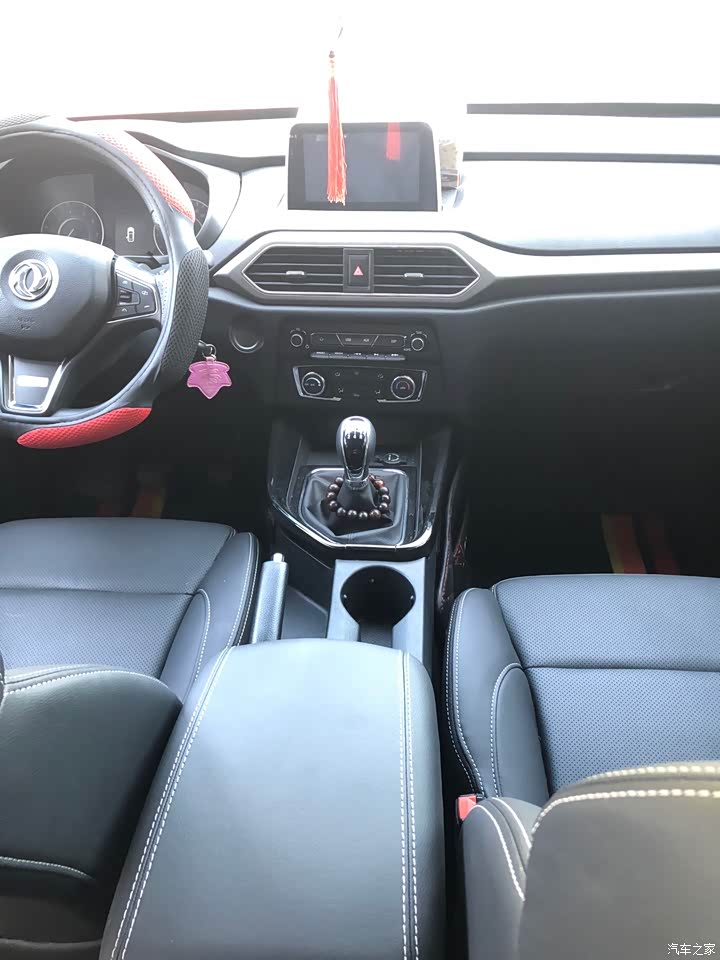 内饰做工一般般但也不会显得廉价,各个按键整体布局很是协调,就是内饰外观显得有点老气,不太时尚。显示屏比手机稍微大些、底下的按钮却像是老式收音机……内饰整体都是灰色的,我把方向盘套上了红黑相间的方向盘套,给车内增添一丝鲜艳的色彩。总的来说,除了时尚感欠缺,内饰方面还算满意,毕竟裸车才六万多块钱,基本配置也都应有尽有了,还奢求啥呢?