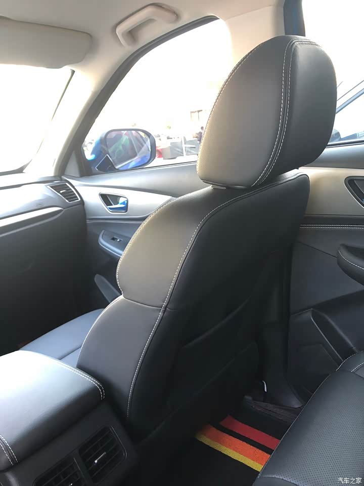 皮质包裹的座椅摸着细腻,坐上去透气又舒适。弄脏了也能一下子就能擦掉。由于空间大,整体的感觉就比坐进轿车的舒服,丝毫不觉得压抑