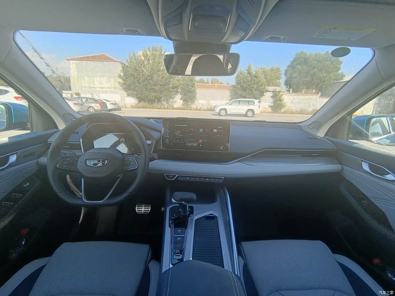 打开车门上车,内饰的设计很时尚,蓝白配色带给我的那种清爽的视觉体验,感觉自己又年轻了10岁,但好看都是有“代价”的,大面积的白色皮质都不好打理,,一旦弄脏了就会很明显。副驾有照明化妆灯,对于女士很方便哦,还可以放置俩个水杯