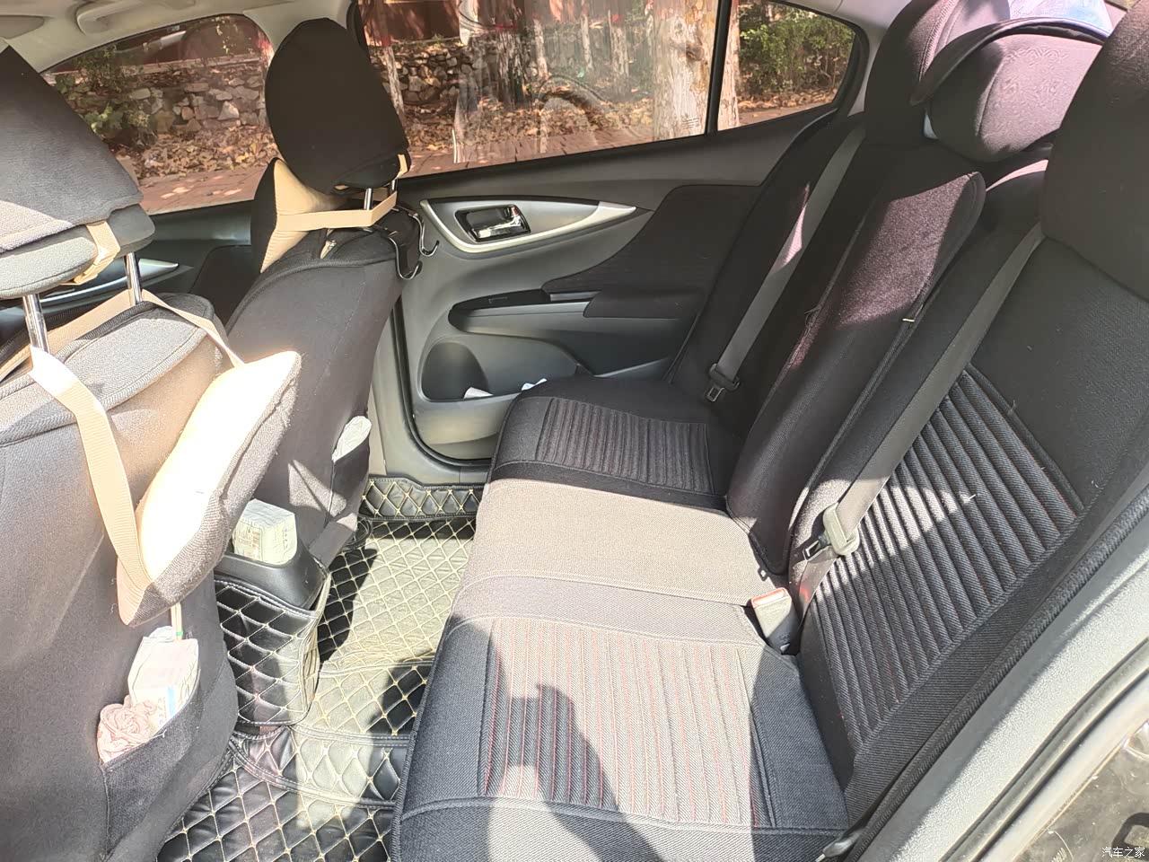 座椅软硬度舒适不错,开长途可以,隔音效果一般好,打开音乐就OK了。乘坐舒适度后排前后空间无压力,三人横向空间只能是凑合。好像大部分紧凑型轿车后排横向空间都不是太好。空调的效果还是比较好,凉的快,风量在3格以上风噪有点大,因为我这款没有后排出风口,后排的温度效果要打折扣。在论坛中看到说这款车的减震比较硬,后排舒适性低,我个人感觉是有点,还专门在做别的车做过比较,其实别的车也好不到哪里去。其实这款车要求的胎压是2.2,我自己安装胎压监测时间以后胎压在2.2舒适性那还是不错的,2.5以上舒适性就比较差。