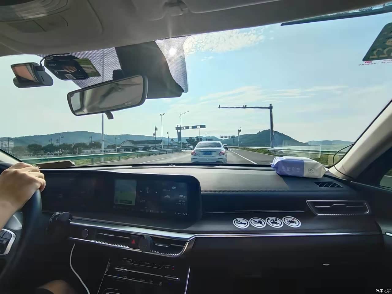 高速行驶非常平稳,给人以信心!超车也毫无压力,坐在后排翘起二郎腿也是完全够用的,旋钮换挡也非常好用!
