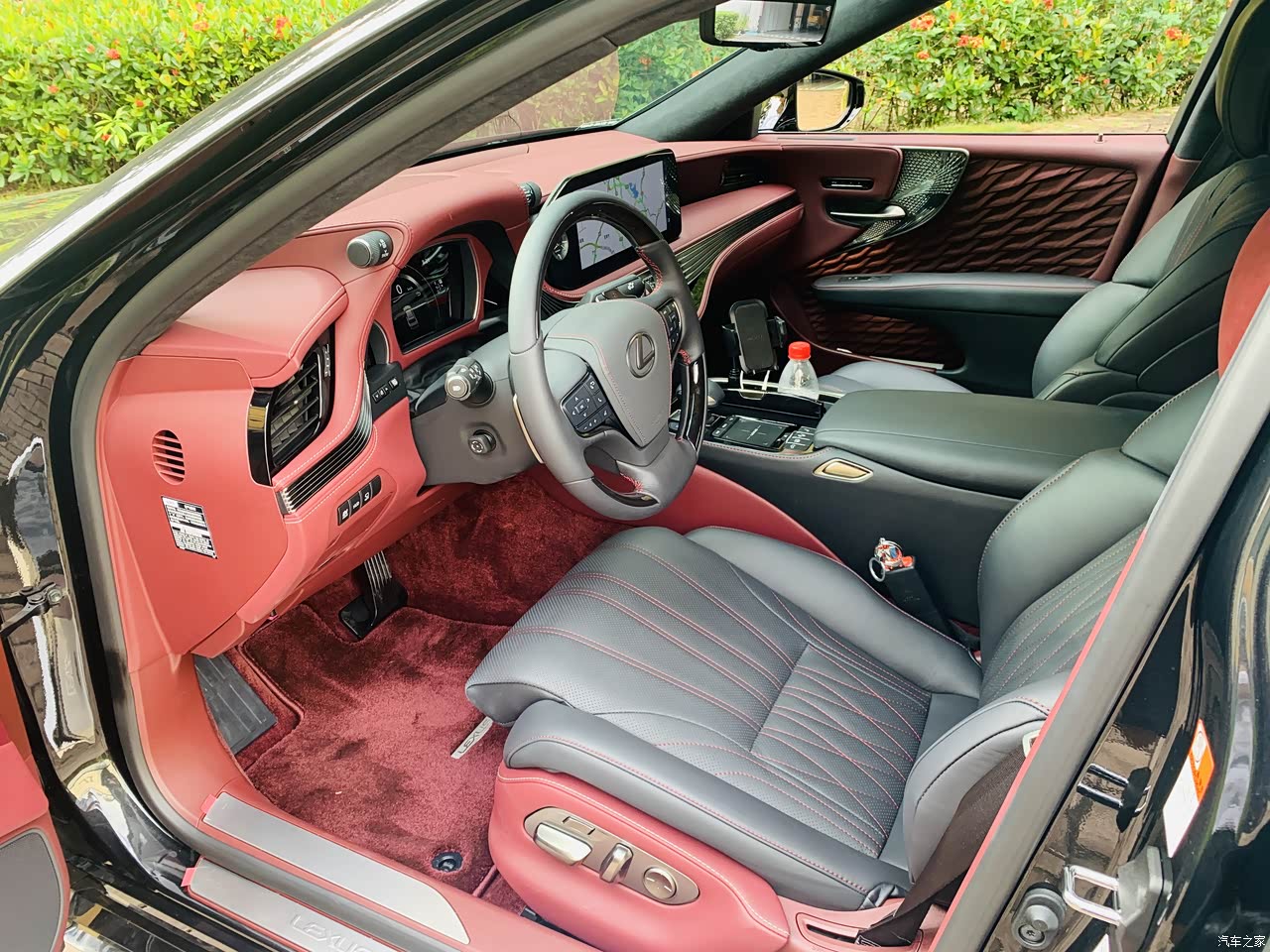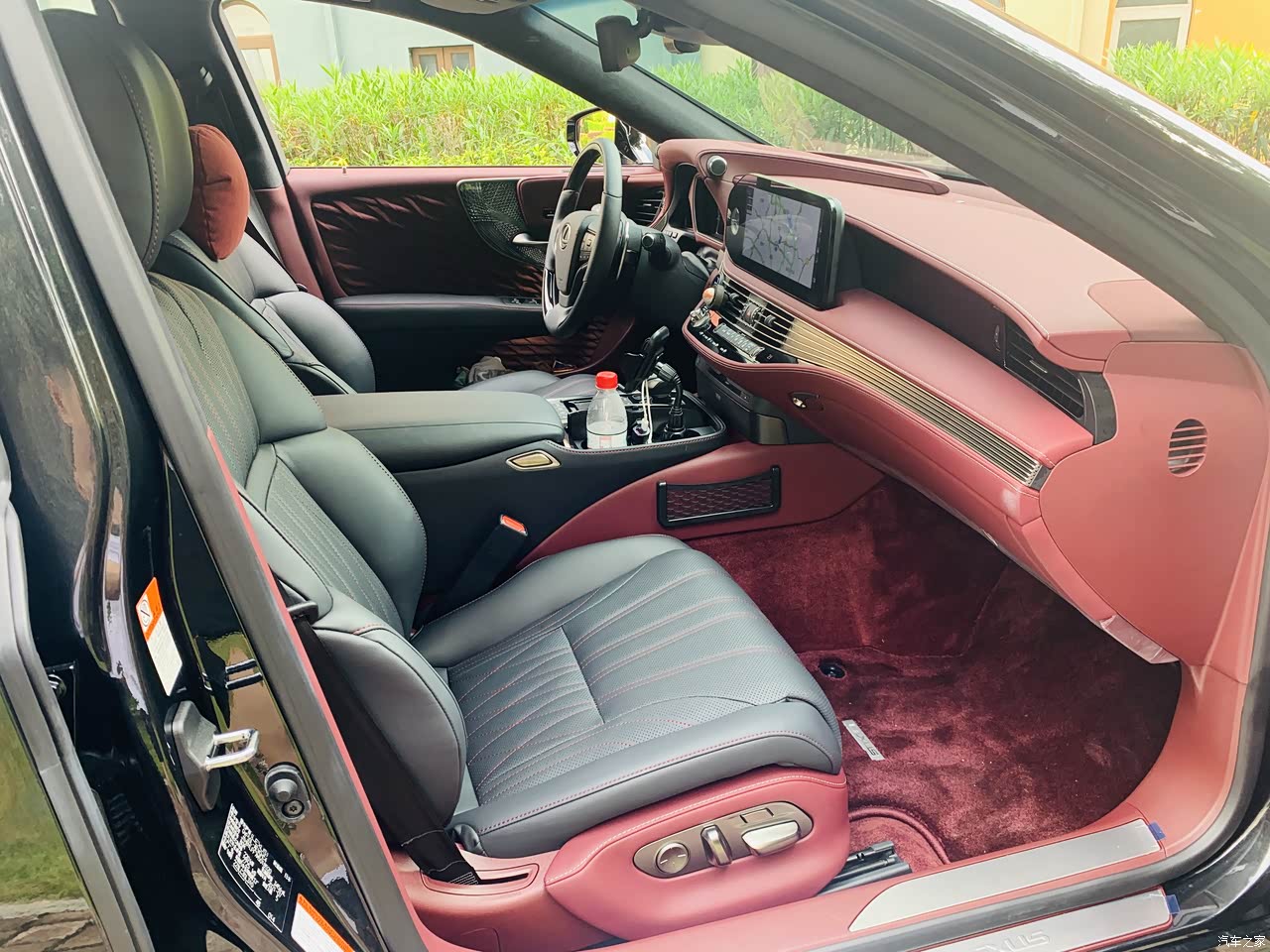 LS带着东方美学韵味的精美内饰,D级车里算是最独特的,第一眼见到行政版这个内饰就被吸引了,我特别喜欢红色,用料也是同级别最好的,座椅半苯胺真皮,门板凌光切子衬鹤羽折布是我最满意的地方,新款中控大屏升级触控屏还是很喜欢的,加上常用功能都配备了精致的实体按纽,传统加科技相结合,这也是我很喜欢的设计,车内很多细节设计很人性化,如安全带插口带灯光指引进入会自动升起,前排座椅缝隙有填充物东西不会掉进去,还有车方向盘和座椅都会自动收缩,细节方面真的考虑的非常周到。