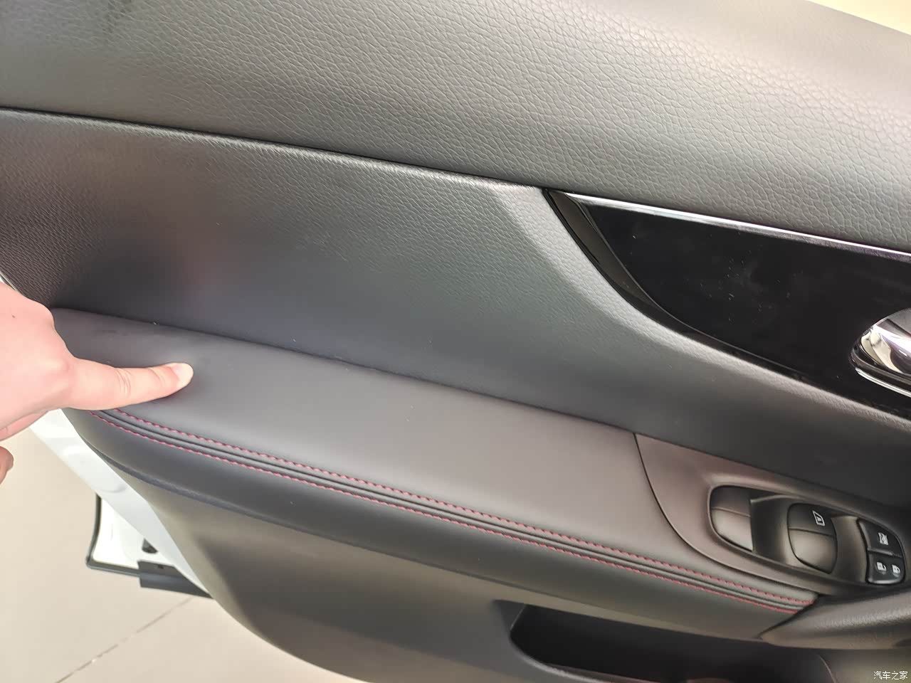 内饰能摸到的地方基本都是软的,包括腿部支撑的那个位置,包括真皮的方向盘,包括仪表盘的搪塑材质,还有门板上面的仿皮,整体做工还是可以的,像有些车还是在用不的,包括英塑料的这个车的内饰做工用料真的挺良心的。