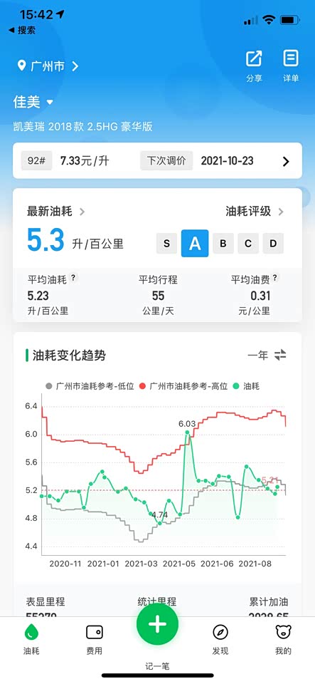 短距离10km加拥堵6-10之间,一般上班40公里开个4.6-5.2差不多