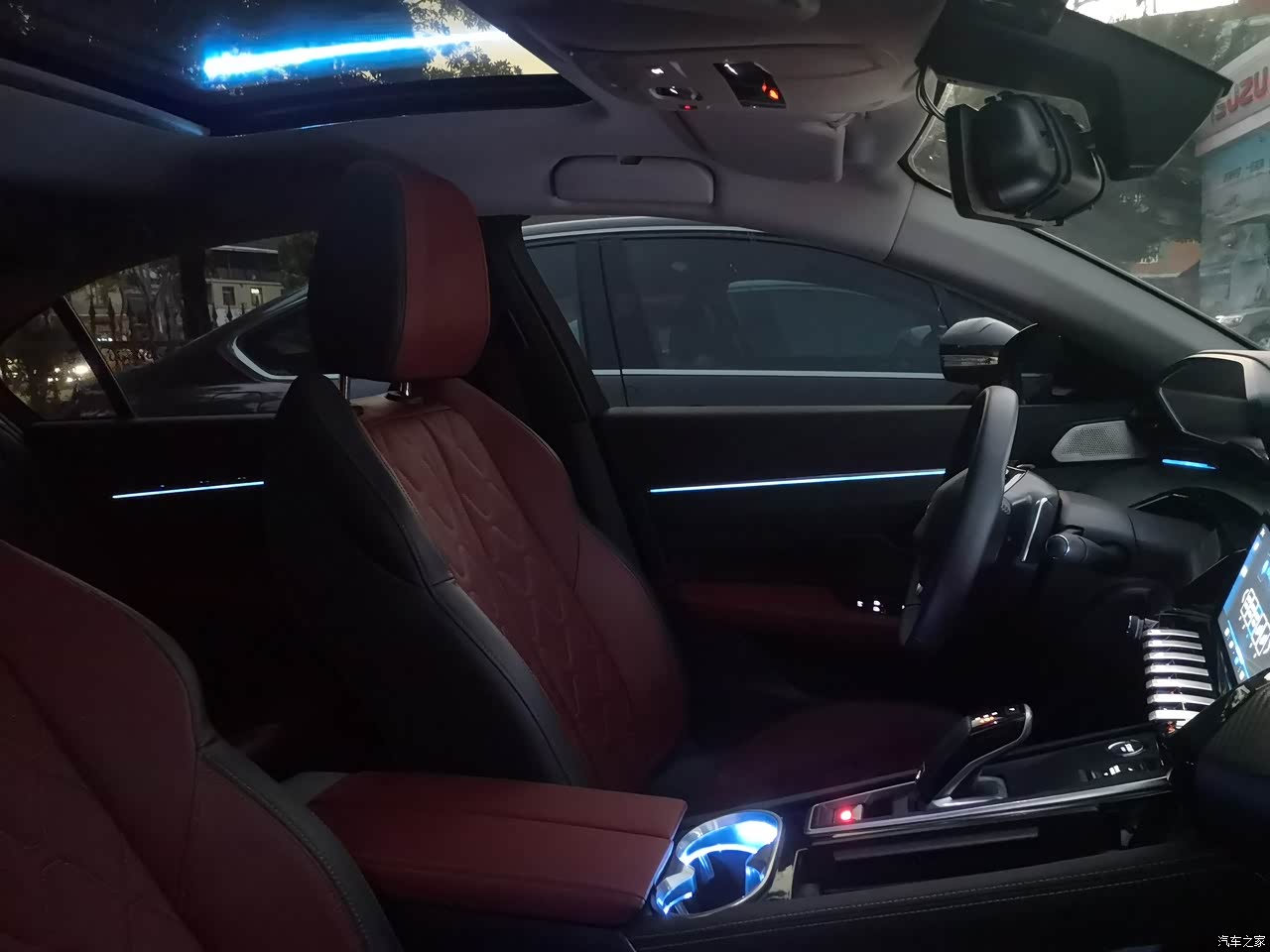 座椅上下左右均可调节,还带有座椅通风的功能。还带有氛围灯带。不过白天看不怎么清楚