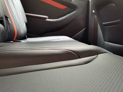 内饰方面整体比较简洁,中控大屏采用大的是悬浮式的,有某马的感觉,一条仿碳纤维饰条贯穿中控台,看上去更加的具有科技感。档把下面的饰板采用的是钢琴烤漆面板,这个有一点容易留指纹和小划痕,所以平时要注意保养。