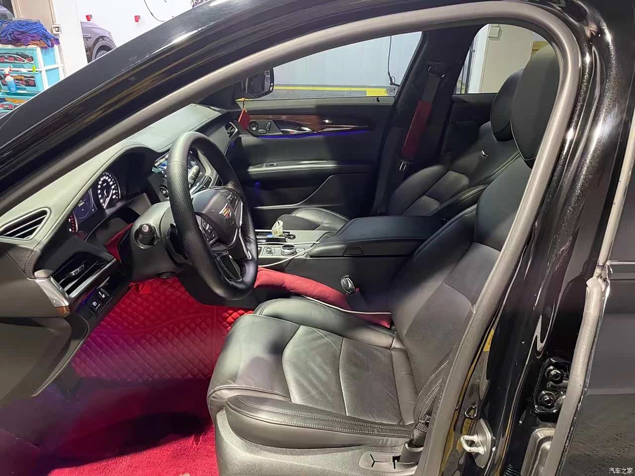 内饰我自己改了氛围灯,我选的全黑内饰,耐脏,中控台设计算不上很喜欢,也能接受,没什么特别的两点,不过配置很齐全,该有的都有,虽然真个车内的设计很简单,还好用料做工还是非常厚道的,这一点凯迪拉克还是比较有良心的