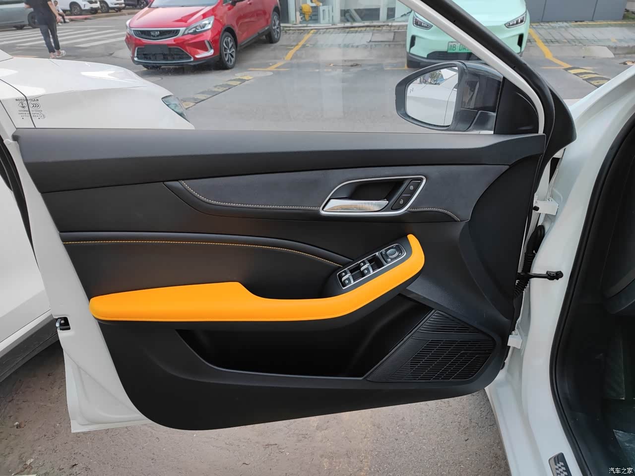 中控是有翻毛皮点缀的没有很强的塑料感,整个车里面也没有很大的皮子的味道,内饰搭配是黑黄撞色设计,比较跳的配色我还是比较喜欢的,即使下班很晚但是自己做到车里打开音乐做着的感觉都会是很舒服的。