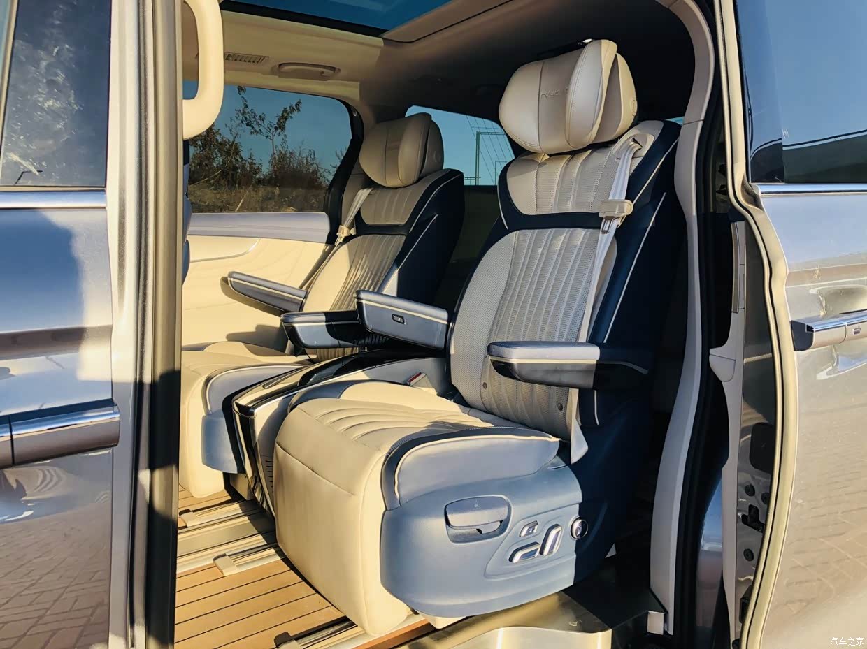 离地间隙低,上下车方便,对老人我小孩来说很友好。第二排座椅堪比头等舱,有加热通风按摩功能,还带腿托,特别舒服。