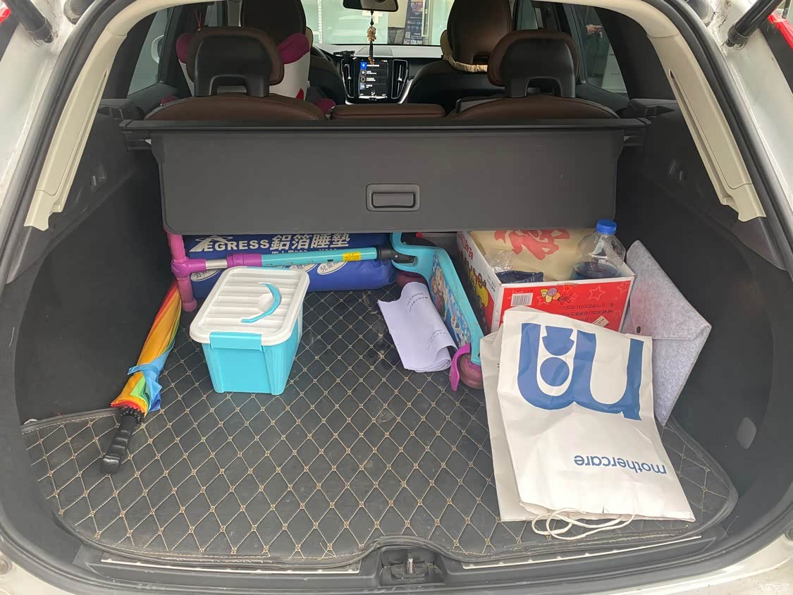 沃尔沃车身刚好合适,后备箱容积很大,出门旅行放小孩的东西,空间也足够,轻松收纳。 家人乘坐腿部空间很舒服,而且手套箱左下方还有一个隐蔽空间,副驾驶靠背放平的话,双脚可以放到哪里,形成一个平躺的状态。后座我放了小孩的安全座椅,旁边也能乘坐两位大人,空间妥妥的轻松,这面积爱了爱了。太适合我们这种家庭出行用车!
