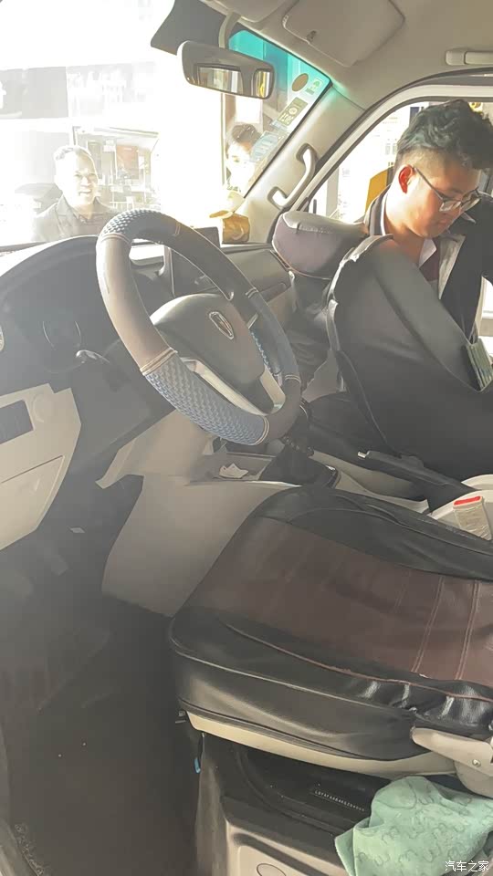 车坐上去还是比较舒服的,主要可能是因为面包车的空间大、坐在里面身体各方面容易伸展的开不觉得压抑。座椅的包裹性不是特别好,不过面包车不能和私家车比,面包车我们买它回来是为了挣钱的,不是享福的,也不能要求太高,我个人觉得 面包车的话开起来不容易累就行吧。