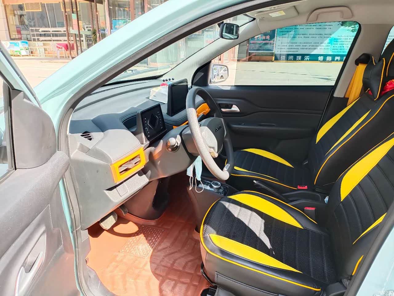 中控台是悬浮式的,还有芒果色做拼接真的是太温馨了