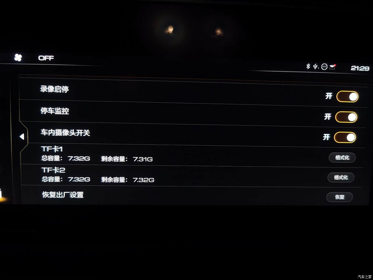 行车记录仪内外都给配齐了。省了好多事儿,配了两张8G的卡。最好的是支持远程查看。有的时候能看,有的时候不能看,还得优化。关键时刻别掉链子就行。国产车加油!