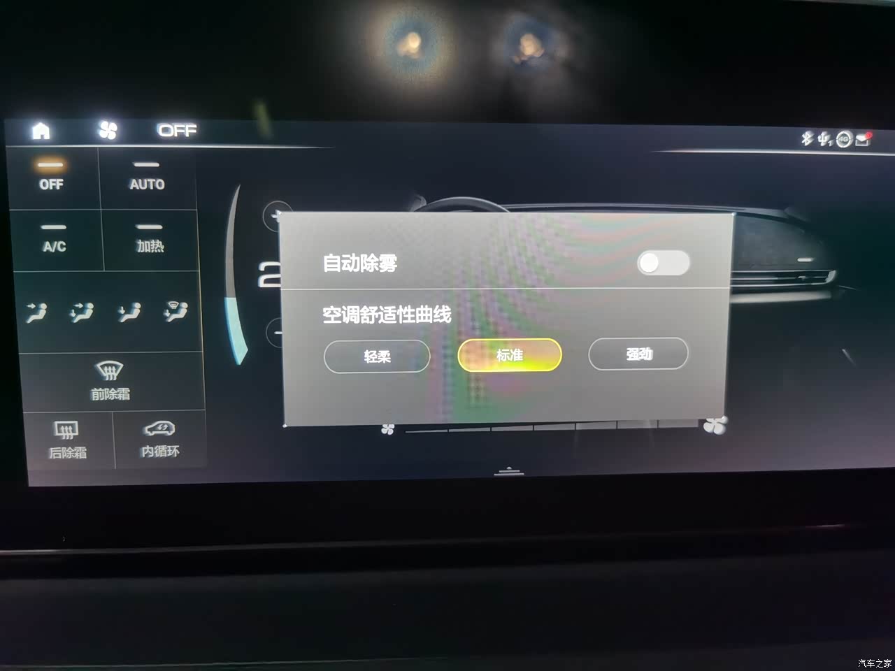 好猫是夏天提的车。 空调非常凉,制冷比较快。 空调舒适性曲线有: 轻柔,标准,强劲三档可选。 冬天制热还没敢开… 环境温度10度以下掉电非常快。