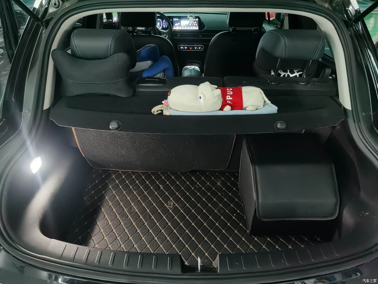 空间都给了座椅,所以后备箱空间小了点,能理解,能接受。后备箱空间是被压缩了,一般的行李箱还是可以放的。超市买些东西还是可以放的。回头想想平时也就这些东西了。