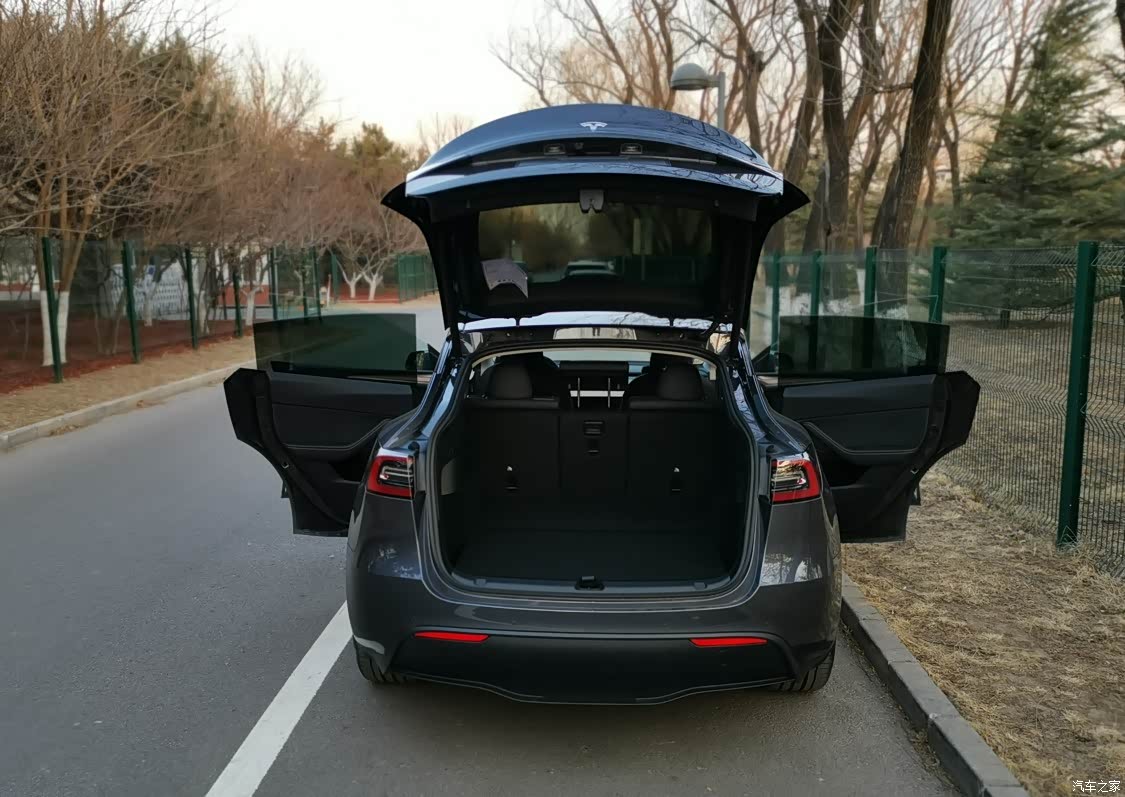 Y的空间真的可以用奢侈来形容,我身高1.71米,家人身高也基本都在这个范围,日常出行以我和我爱人为主,晚上或周末时一般是四大一小,小朋友的安全座椅被安装在驾驶位后面,我岳父坐副驾,岳母和我爱人做副驾后面和后排中间,因为安全座椅过宽占用了一些后排中间座椅面积,跑远途时我爱人会觉得有点累,但整体来讲乘坐空间还是非常宽裕的。手套箱看着有点浅,但实际上放的东西也不少,我现在放了一副眼镜、两个口罩、一些纸质文件,还是绰绰有余的。由于特斯拉是怀挡设计,也没有在扶手位置设计实体按键或者操作台,所以中控大屏下方两个无线充电位后面都是储物空间,一前一后两个扶手箱都很深,相当能装。门板的空间也不小,我和我爱人会各自放一个星巴克的随行杯,然后还能再放两瓶矿泉水,一瓶红牛,再放一小袋零食也没问题。后备箱的空间虽然由于Y的溜背设计高度上略受影响,但还是超大,相信大家都看过Y刚上市时引发热议的一段视频,Y的后备箱打开后,从里面陆陆续续出来十来个人。
