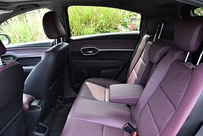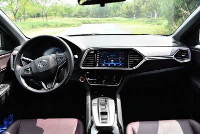内饰科技感还是比较足的,首先是换挡方式就是按键式换挡,比较新颖,其次就是中控屏幕显示色彩清晰,倒车影像都看得清楚,分辨率还是比较高。紫色的内饰比较有质感,中控台的做工用料都比较用心。整体还是很清新的感觉。