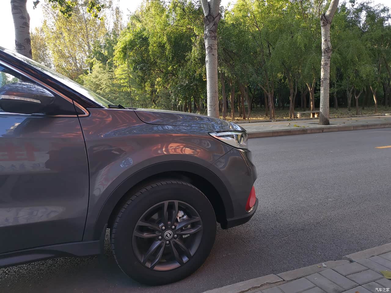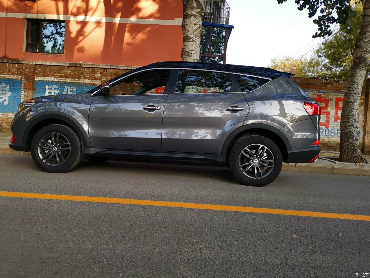 最满意的第一点是外观,灰色车身橙色装饰条点缀时尚动感;第二点是空间,七座大空间,全家一起出行也不在话下;第三点是性价比很高,不到十万买台中大型SUV,开出去很有面子。