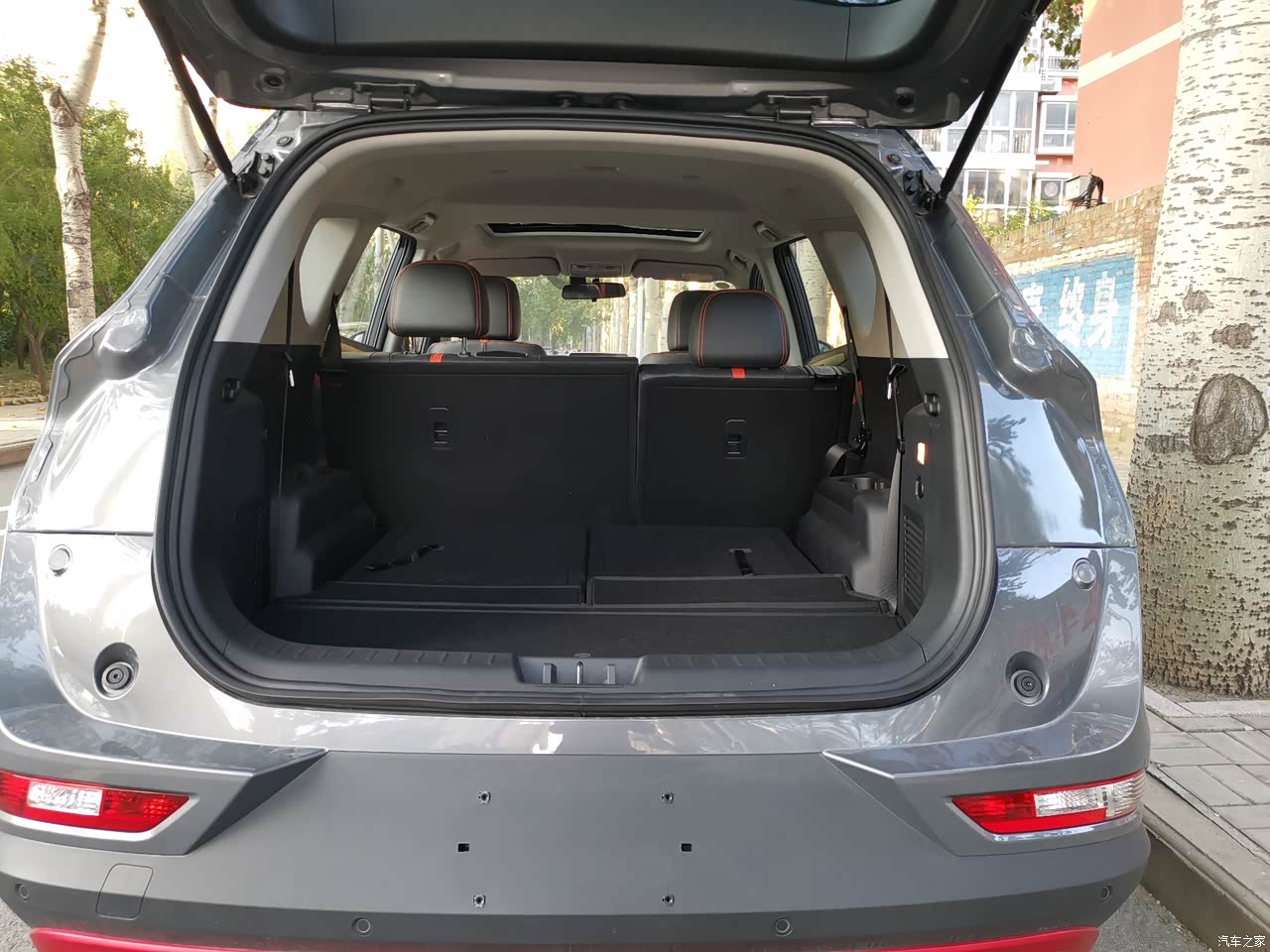 2785mm的轴距决定车身空间,一米七八的个子体型稍胖,坐在前排一点不觉得挤,头部还有一拳多距离,第二排空间也很大,第三排稍微狭小点,小孩子乘坐还是绰绰有余的。第三排放倒后备箱空间足够大。整个车的储物空间也比较多。