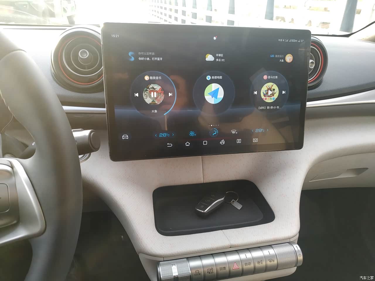 内饰设计的很新颖,换挡的位置在中控台下面。给我的感觉有档次,哈哈。多功能方向盘,银色的按键看着很舒服,按键的手感也很好。还有一个中控大屏幕,操作流畅,也不卡。连上网络可以当个平板用。