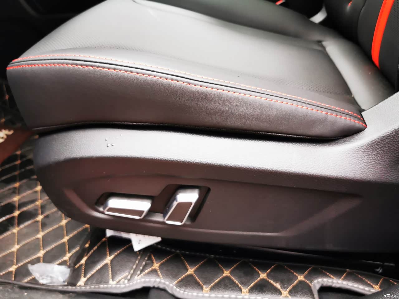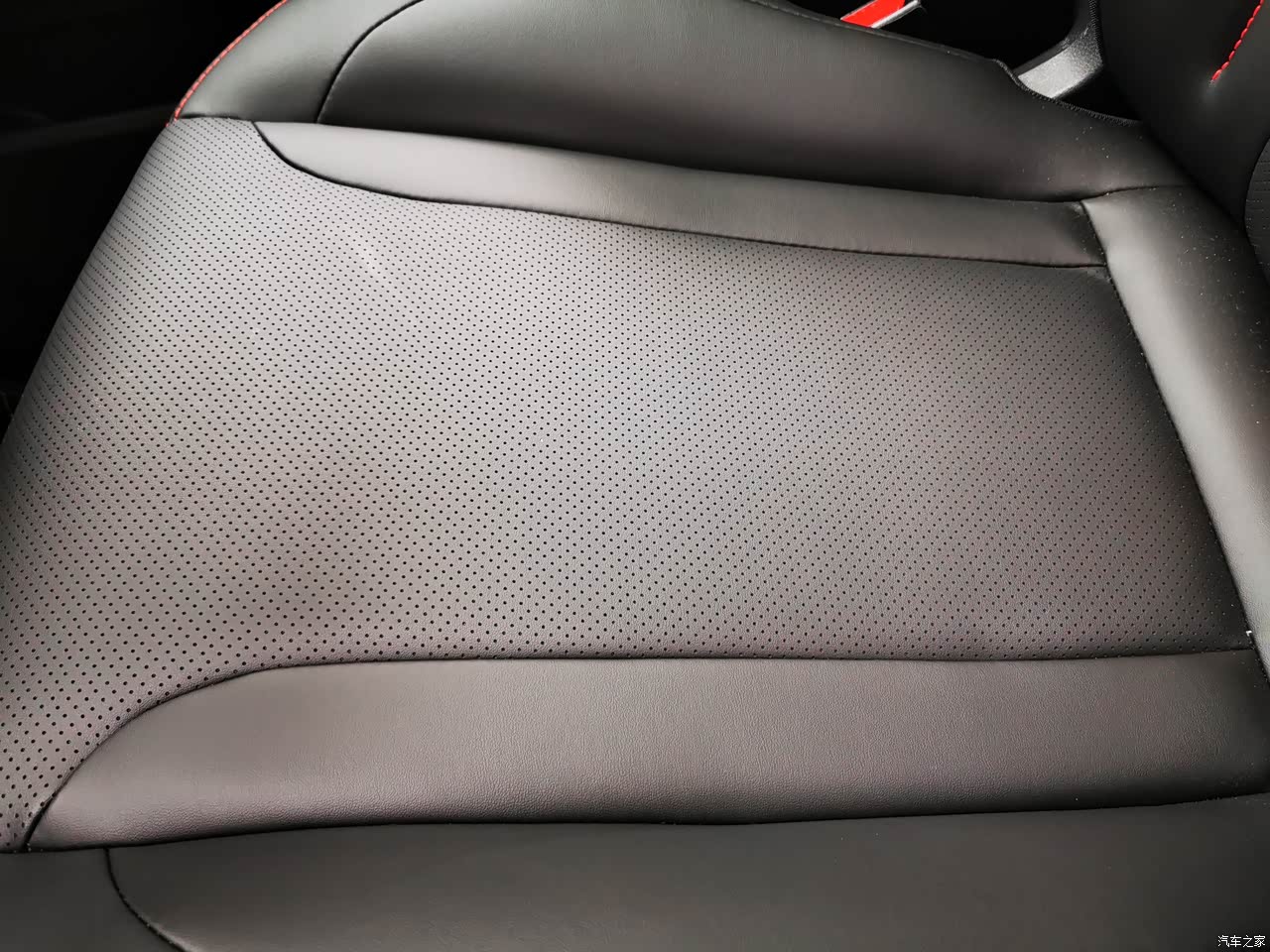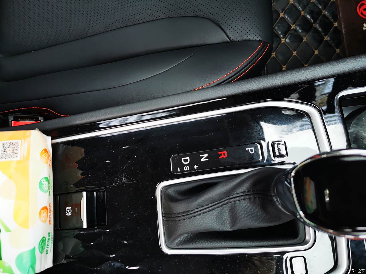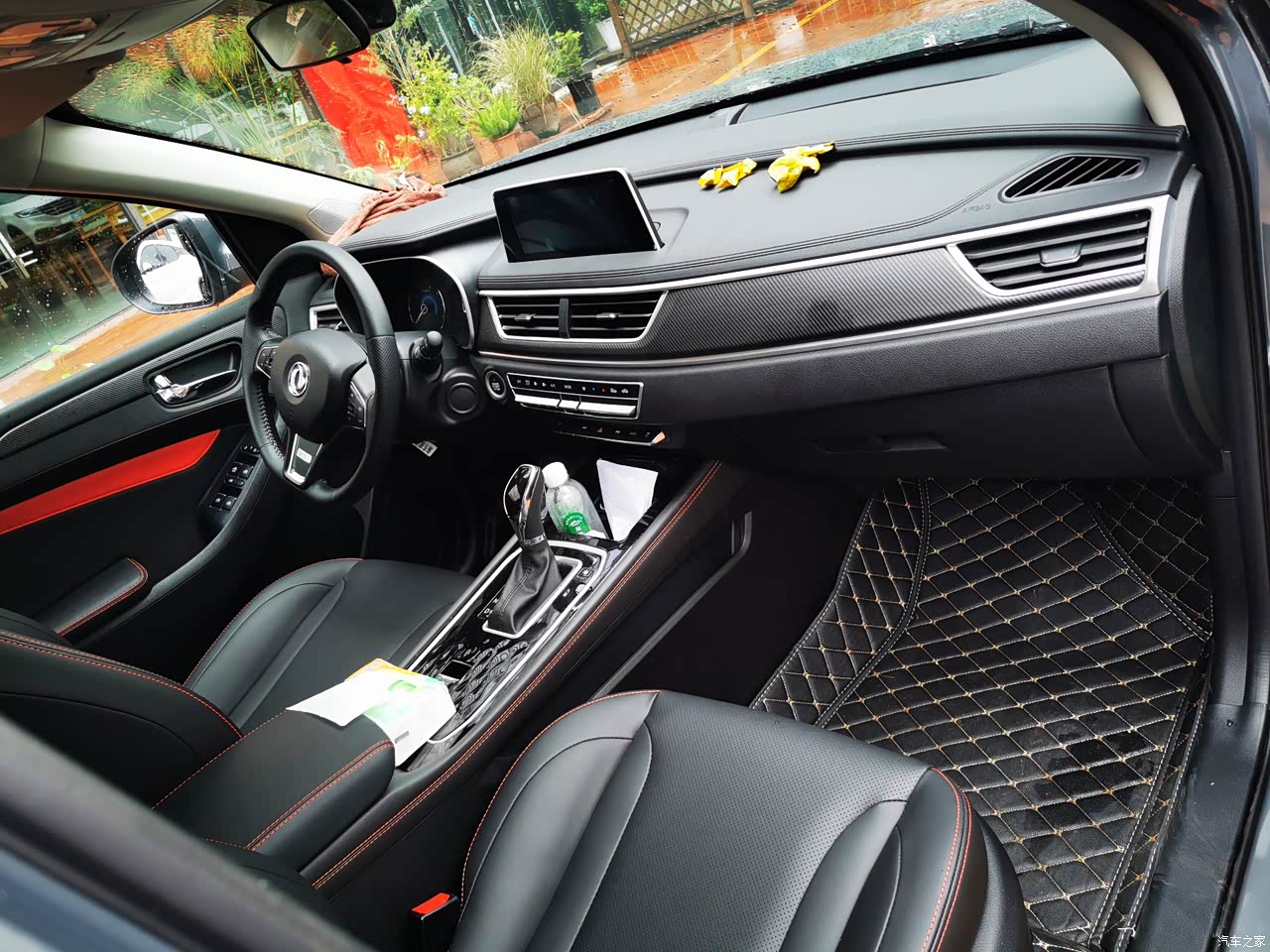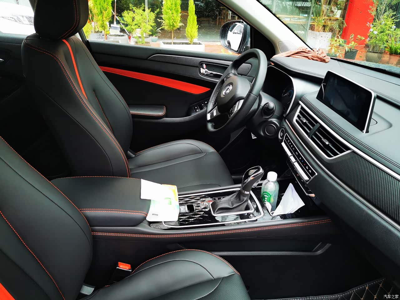 内饰:内饰很漂亮,红黑撞色搭配,看起来很高级,门板上,扶手箱,中控台连接的地方只要手摸到地方都是皮质包裹,再配上那一抹红,真是超级漂亮。中控台和档杆周围是用了黑色金属烤漆,不错。