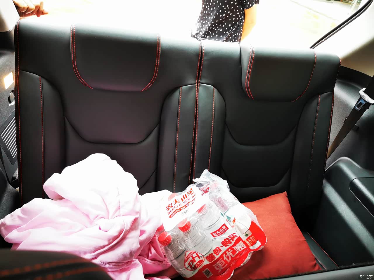 最满意的一点:最喜欢这款车的地方是这款车的空间,这车的车身尺寸达到了长4.7米,宽1.8米,高1.7米,轴距将近达到了2.8米,所以这车的外观确实很好看,大气,力量感十足,然后前脸采用设计感很足的矩阵式进气格栅,上面还有一个红色的小标志,保险杠有一抹红色的装饰,这让这款车多了灵动。价格方面也不高,一款7座的SUV在优惠之后,办下来在10万多一点,这价格是相当吸引人的,也在我的预算范围内。然后内饰方面也吸引了我,用了红套黑的设计,黑色的皮质座椅套一抹红色,很漂亮,门板上,扶手箱,中控台链接的这些地方都是皮质的软包材质。然后座椅的厚度和柔软度都很不错,每个座椅都有红色的一条装饰,而且椅子采用了红色的线进行缝制,这完全让这款车很有质感,很有档次。所以不管是外形还是内饰我们一家都很满意,特别是还有一个天窗,老婆和俩小孩那是特别的喜欢。