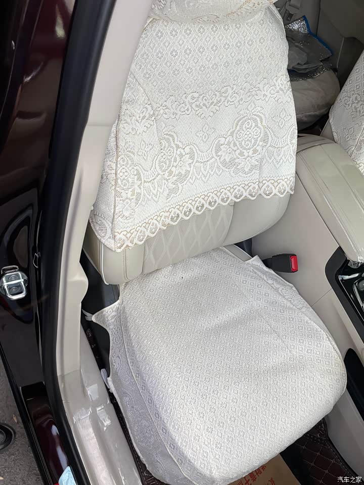 内饰座椅是象牙白的真皮打孔的,在头枕部分还有专属的艾维亚的logo,档次一下子就提高了。然后就是整个内饰部分都是软包,摸起来都是很有质感的。