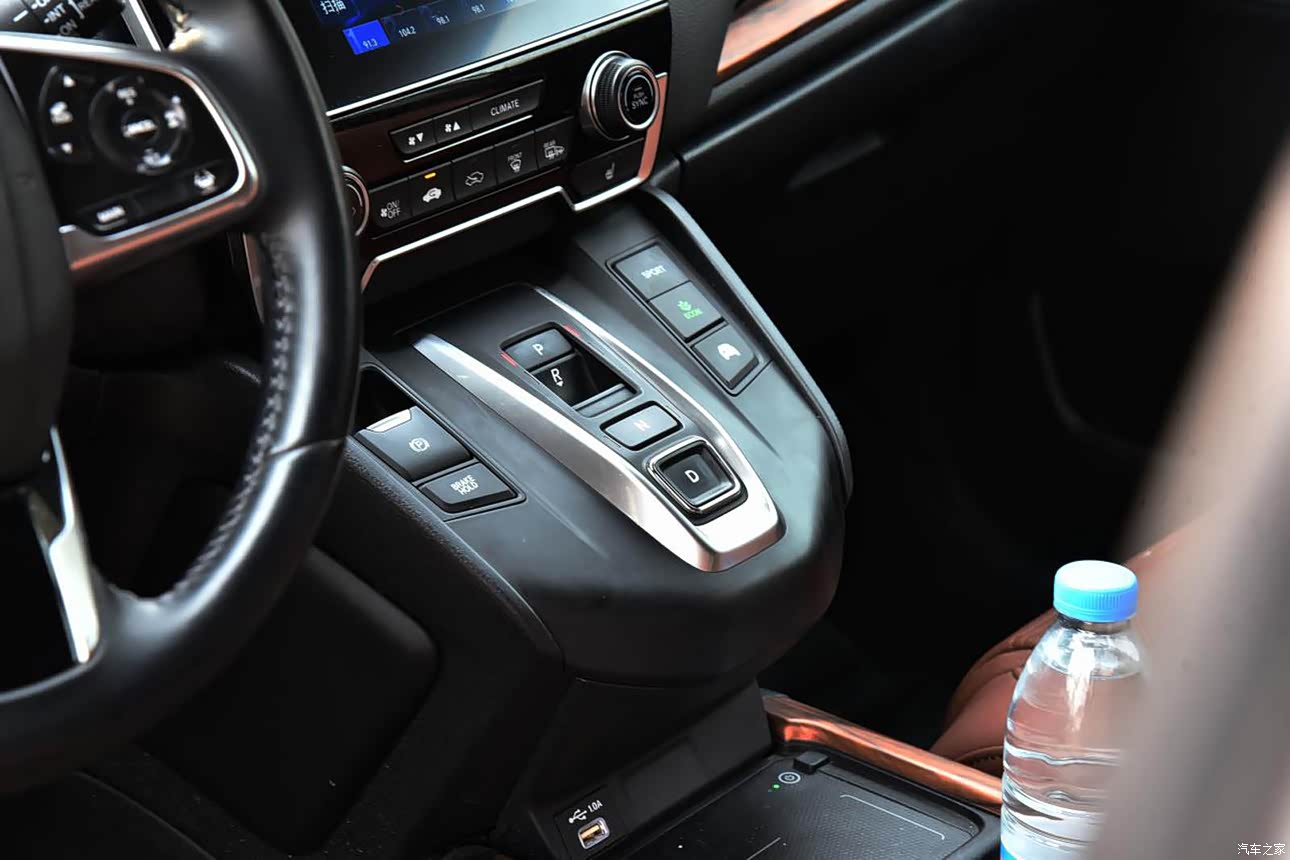 我觉得CR-V的内饰在简洁中又增加了一丝精致的气息,整车的内饰设计很简单,没有特别突出的设计,黑棕色调的搭配还是不错,起初看起来给人眼前一亮的感觉,显得还比较精致吧,看习惯了全黑的内饰设计,再看看棕色的内饰,觉得还挺不错。中控台没什么好说的,就是7英寸的触控液晶屏、电子按键档位、比较大的置物空间,属于车辆标配,我们这款车它搭载了本田的智联超感系统还不错,可以进行智能语音操控、精准智能导航和实时位置共享,这些功能还比较实用。