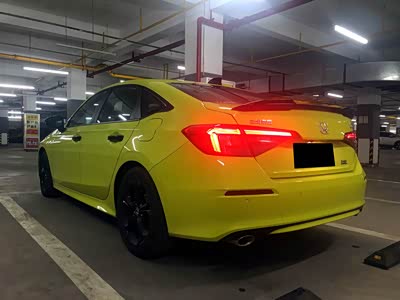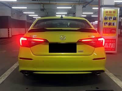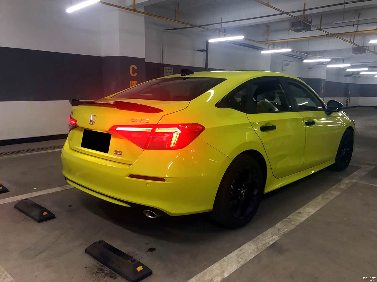 十一代思域的外观可以说是非常优美了,甚至有点高级感,车身依旧做了很多的熏黑处理,前脸上下双格栅的设计给人车身更宽的视觉效果,而且上格栅略低于前大灯,看着还有点低趴。车身侧面的线条也比较圆润,但腰线还是非常硬朗,加上17寸的轮毂和小“S”形的溜背,运动氛围营造得还算不错,并且尾部还配上了小尾翼,排气也是双边单出的布局,性能感丝毫不减。前后灯组均是“L”形,完美形成前后呼应。