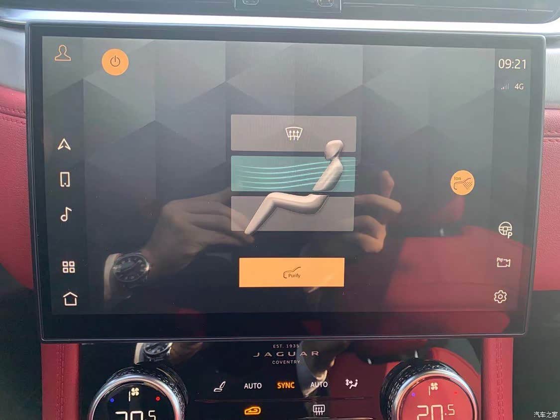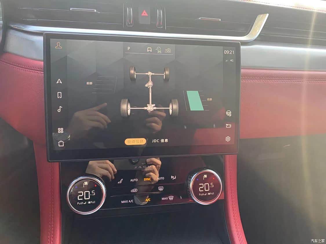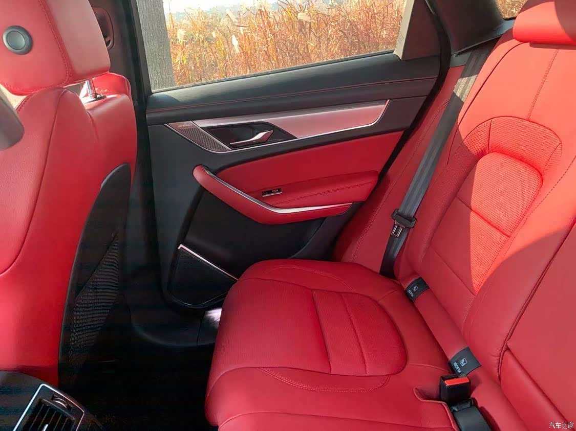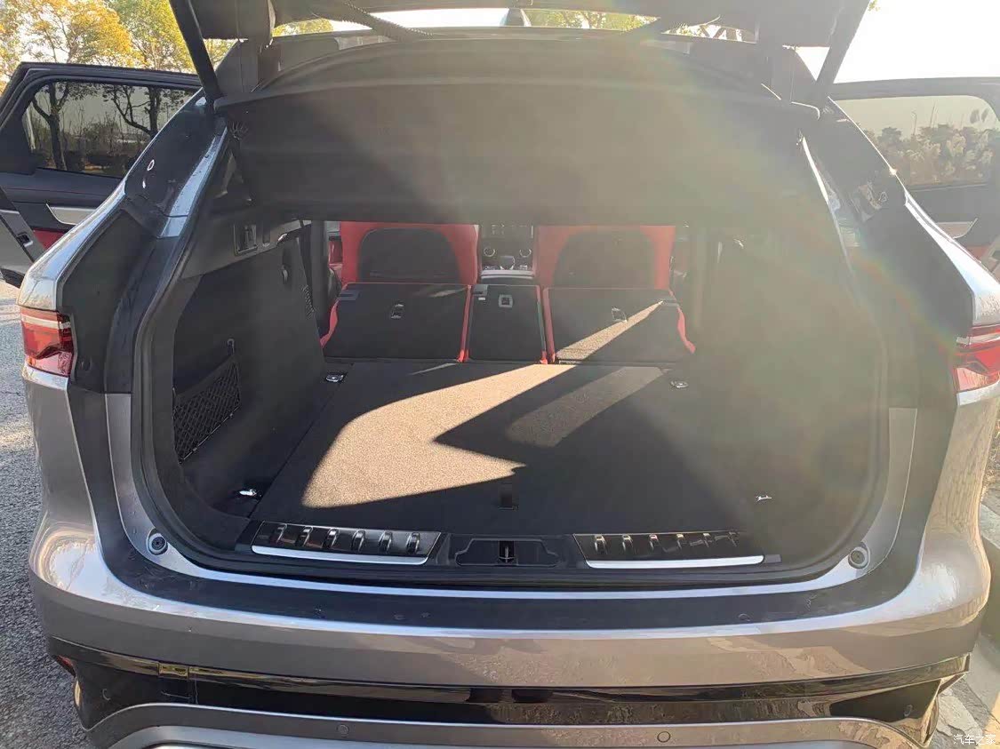 我选择的是红色内饰,运动风格满满,非常适合年轻人,里面细节也做的很到位,头枕的捷豹豹子的烙印非常有质感,中控11.4寸的曲面大屏很有科技感可以显示3D的全景影像实用且逼格满满。