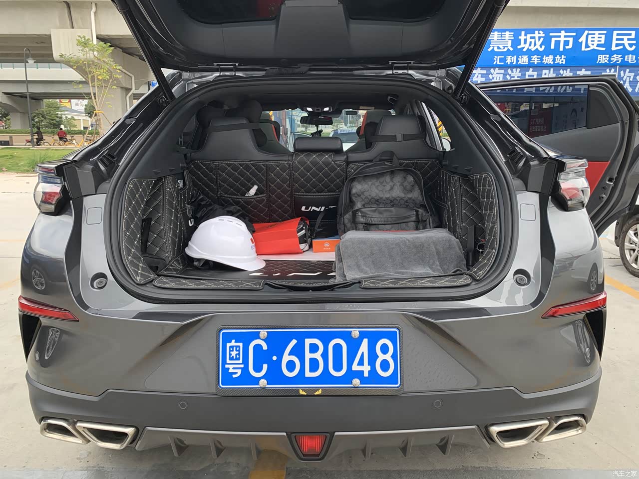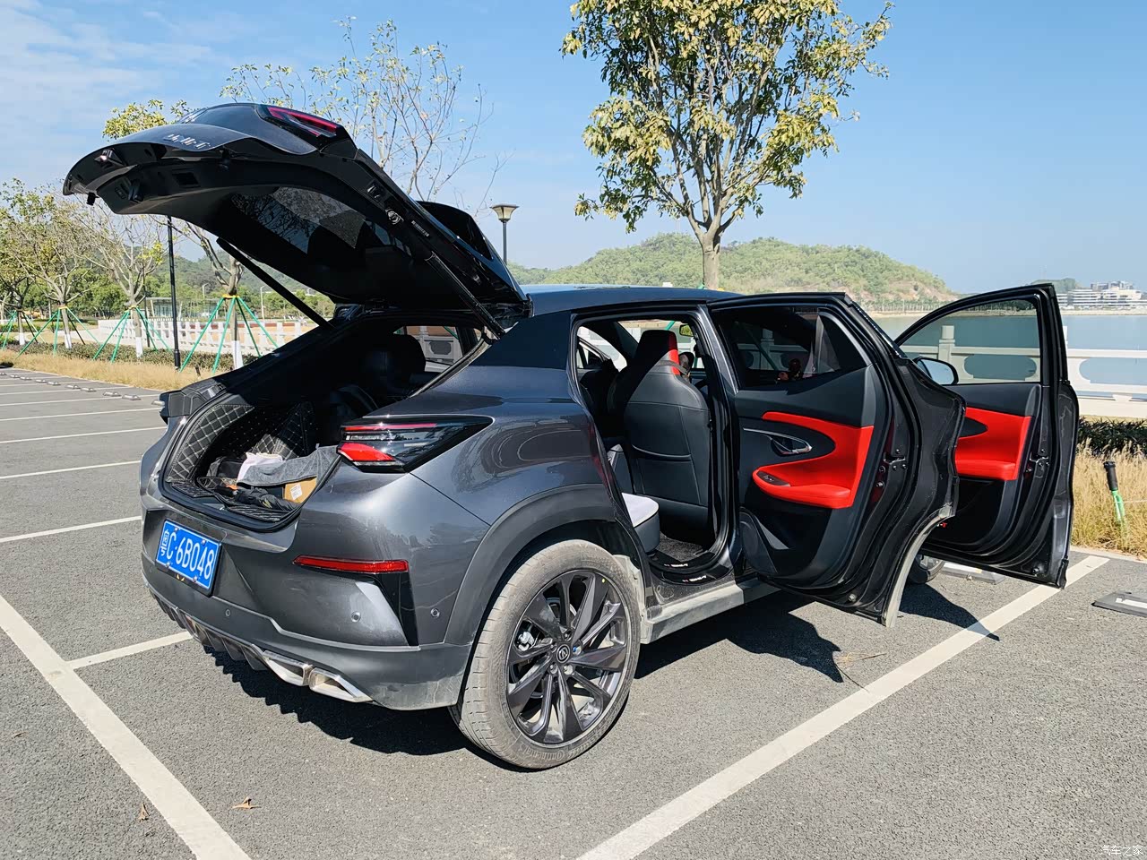 因为车是比较低趴的,所以看着后排可能会很挤,但是我升高1.76米,坐在后排绰绰有余。前排储物空间很多,中间扶手箱深度很深,还有一个镂空的储物格