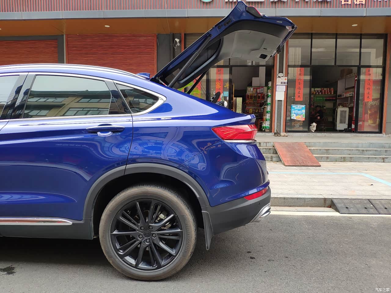 轿跑SUV,时尚感很浓郁的。当初也是被它的外观给吸引了,蓝色的车漆很亮眼,这是我们一致点选择。
