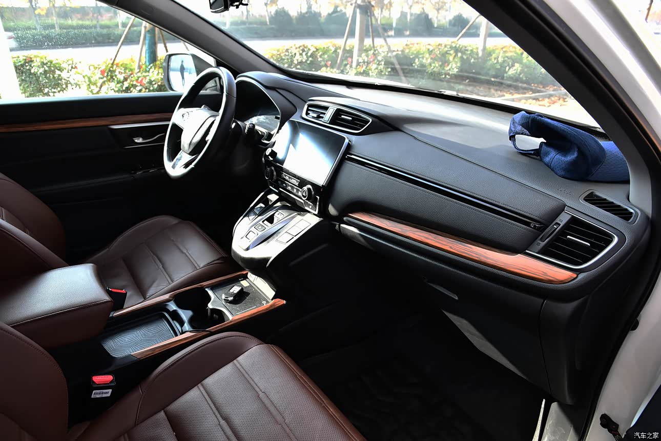 CR-V的内饰给人感觉还是比较有质感,全车都是真皮材质,方向盘、座椅和车门扶手处都是,手感很是不错,看起来也上档次。中控屏幕因为尺寸有点小,看起来不够大气。
