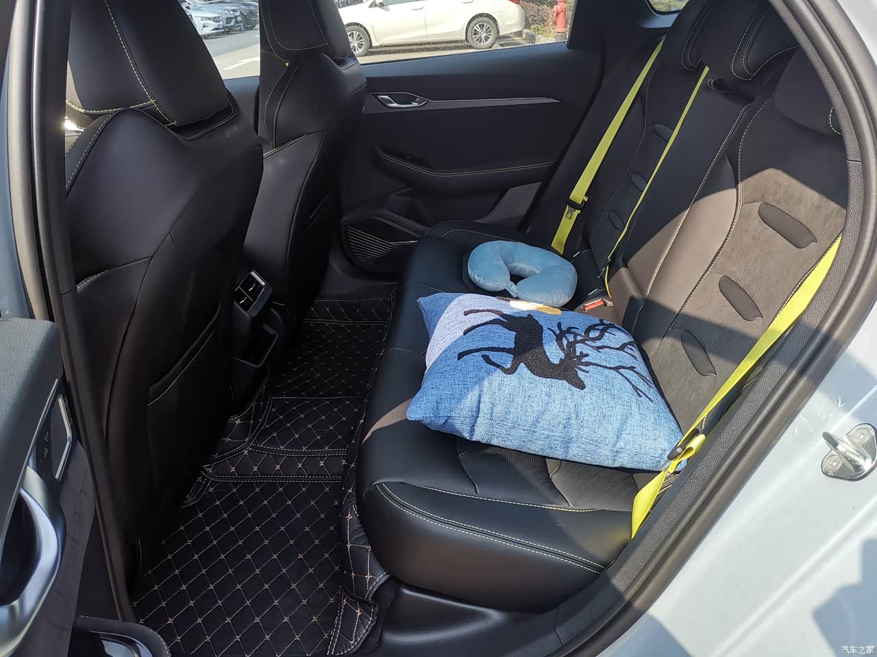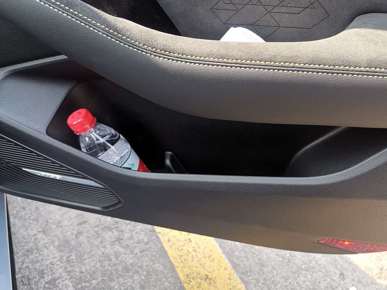 内饰最大的亮点就是,大部分地方采用了翻毛皮,安全带也是黄色,运动系列,让车内整体的质感就上去了,能摸到的地方全部是软包材质,皮革包裹,加上boss音响,让车内质感瞬间就上去了