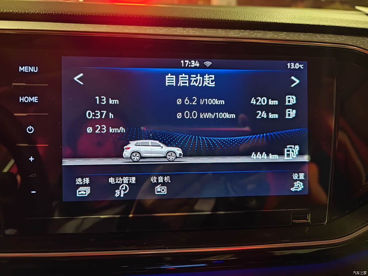 杭州初冬,气温8-18度,平均车速20。停在地库,出发有18-20度,所以不用打空调,不暴力驾驶续航可以达到50-60,电耗16-18/百公里。但开这车会难免控制不住地板电,一旦进入暴力模式加开空调,能耗几乎可以翻倍,当然续航也就减半了。看别的车友开到过纯电12-13度的,我肯定没有耐性按照老头乐的方式来驾驭这块车的。所以能耗关键取决于你的开车风格。 安装充电桩之前,一直用蓄电池充电和保持模式跑,由于磨合期不敢暴力操控发动机,纯油耗基本在6.3-6.5/百公里,对于一个磨合期1.8吨多的车来说,已经很厉害了。