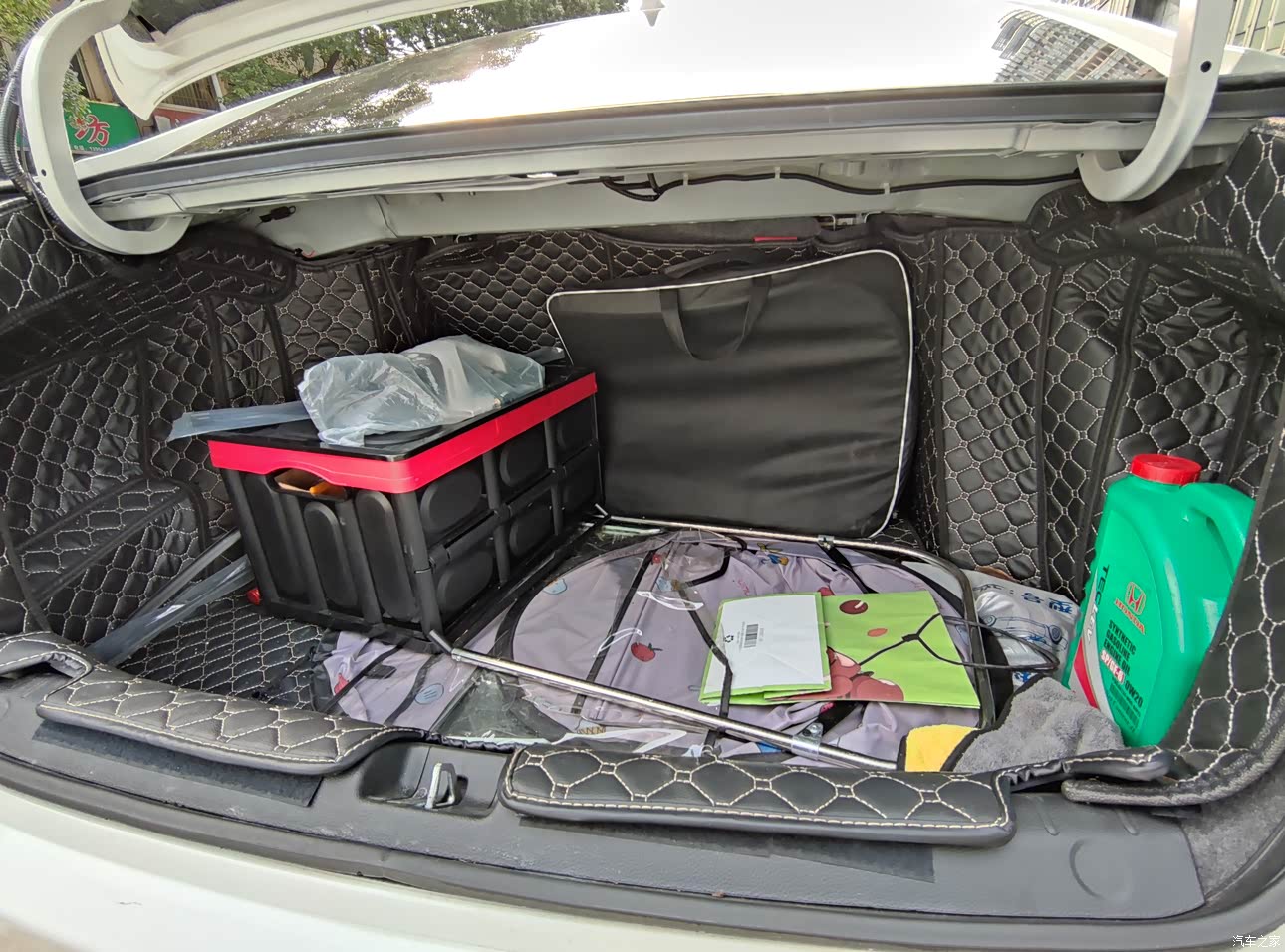 后备箱平整度很不错,空间也很大,比较适合家用,特别是有孩子的家庭,出行带很多东西也无压力,婴儿车大行李箱啥的随心所欲的放