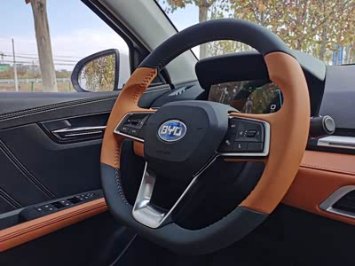 乘坐空间宽敞,坐进车内的第一感觉很舒服。不过我这个中配,没有全景天幕,视野上没那么开阔。作为一款10万级别的小车,e2的底盘调教只能说是平均水平,和好的车型相比有差距,走烂路的时候琐碎的震动有点多,对冲击的化解没那么充分。