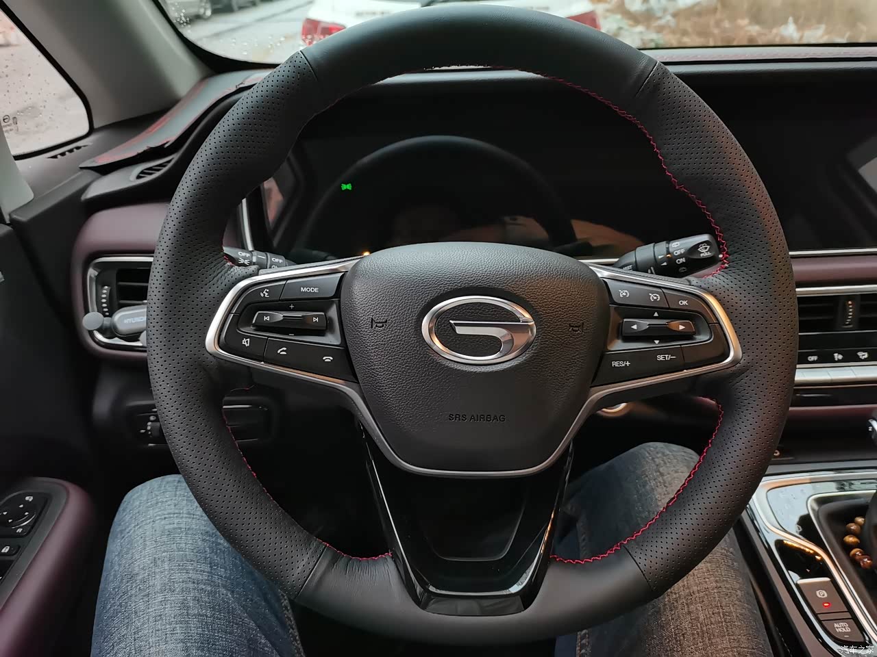 方向盘刚入手时是个“大滑手”后期我单独买了个二层小牛皮的手缝方向盘套,非常完美了。另外方向盘特别轻盈是个特色。